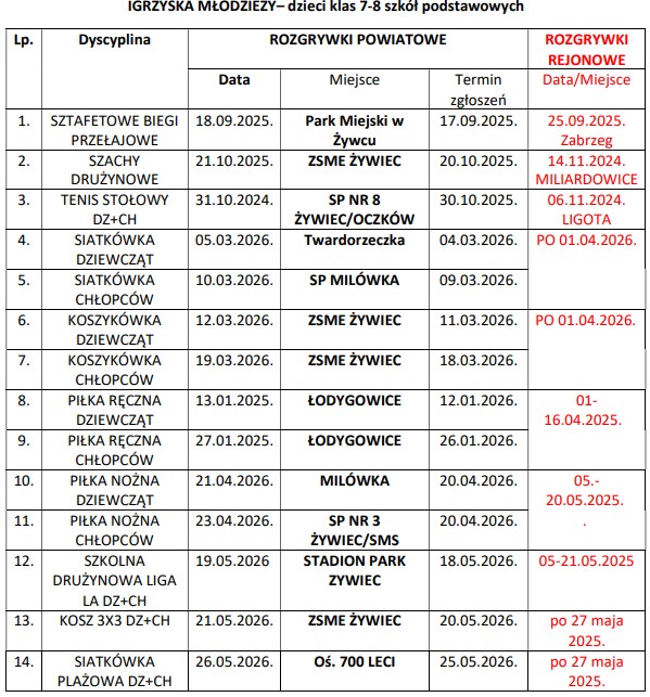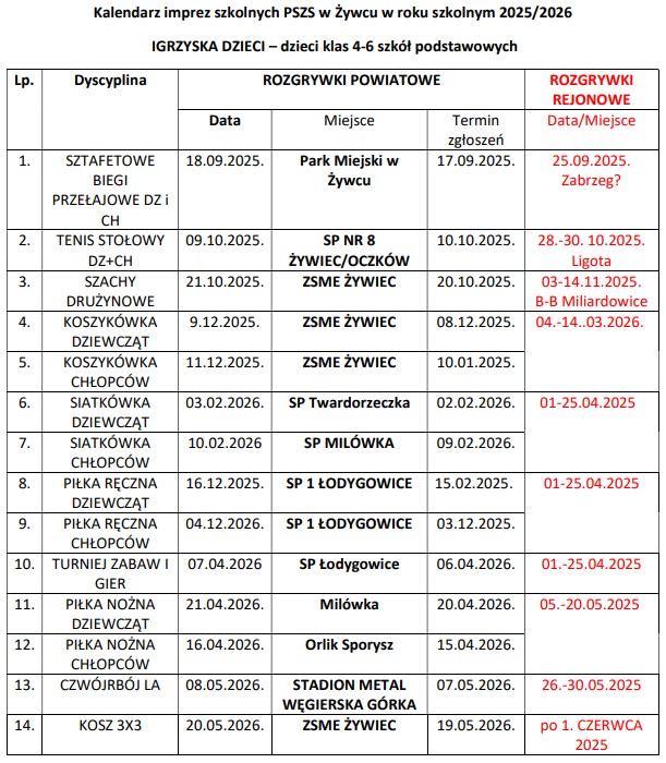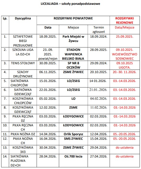 sportowych WRZESIEŃ 2025 – CZERWIEC 2026
